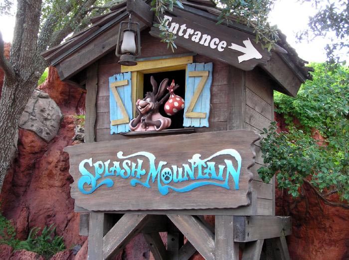SPLASH MOUNTAIN cuenta la historia de la película de dibujos animados Song of the South, con todos su personajes característicos: El conejo, el zorro y el oso. Esta película está basada en las famosas historias de Uncle Remus. El astuto conejo siempre está en peligro de ser capturado por el zorro y el oso, pero, para su fortuna, éste sale airoso de los frustados intentos por capturarle.